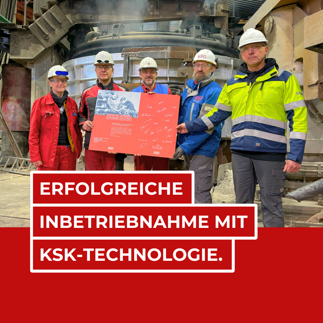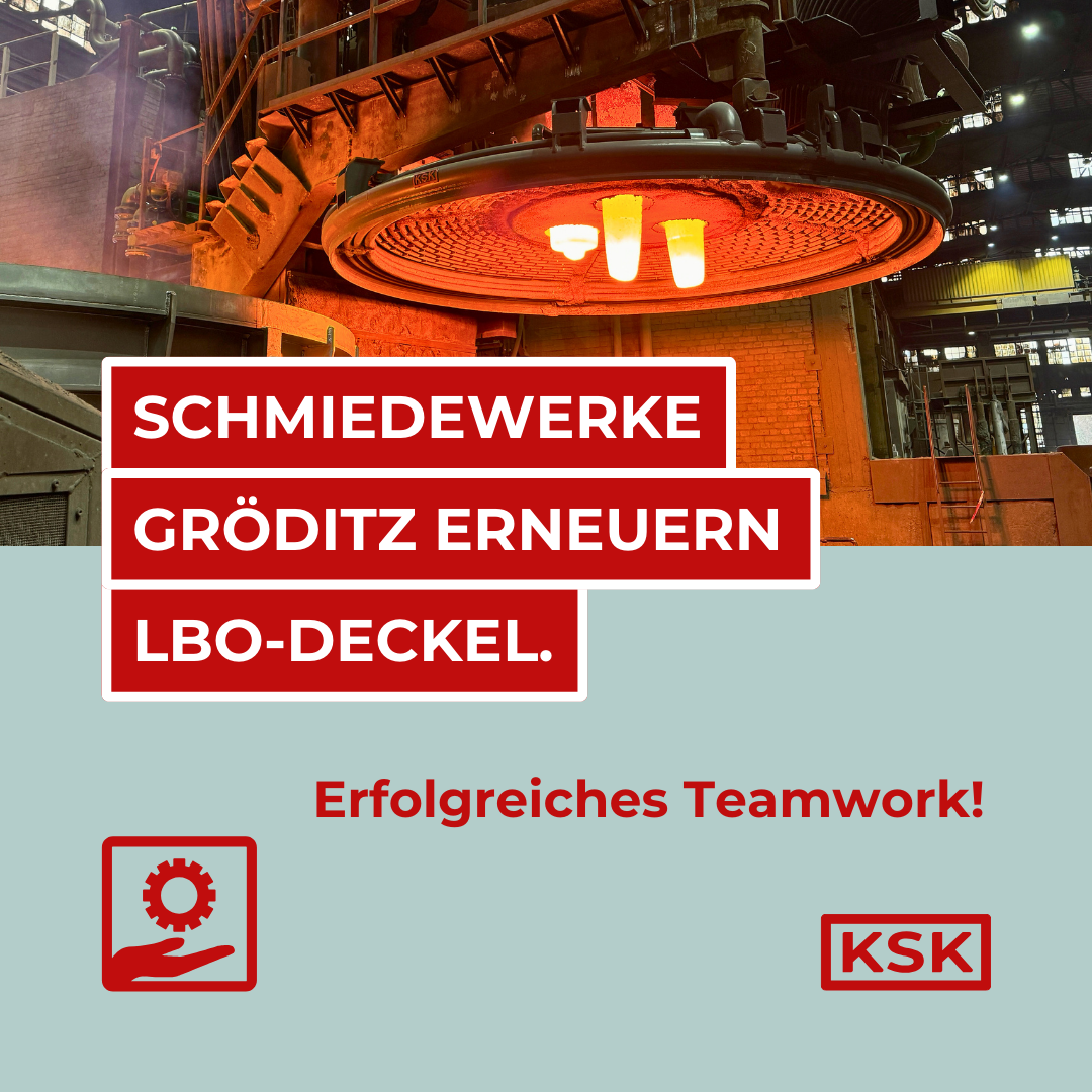 Für die KSK begann das neue Jahr mit einem gelungenen Abschluss. Gemeinsam mit den Schmiedewerken Gröditz konnte der neue, wassergekühlte Ofendeckel in Rohrkonstruktion, inklusive Staubkammer und Rückkühlkreislauf erfolgreich in Betrieb genommen werden.